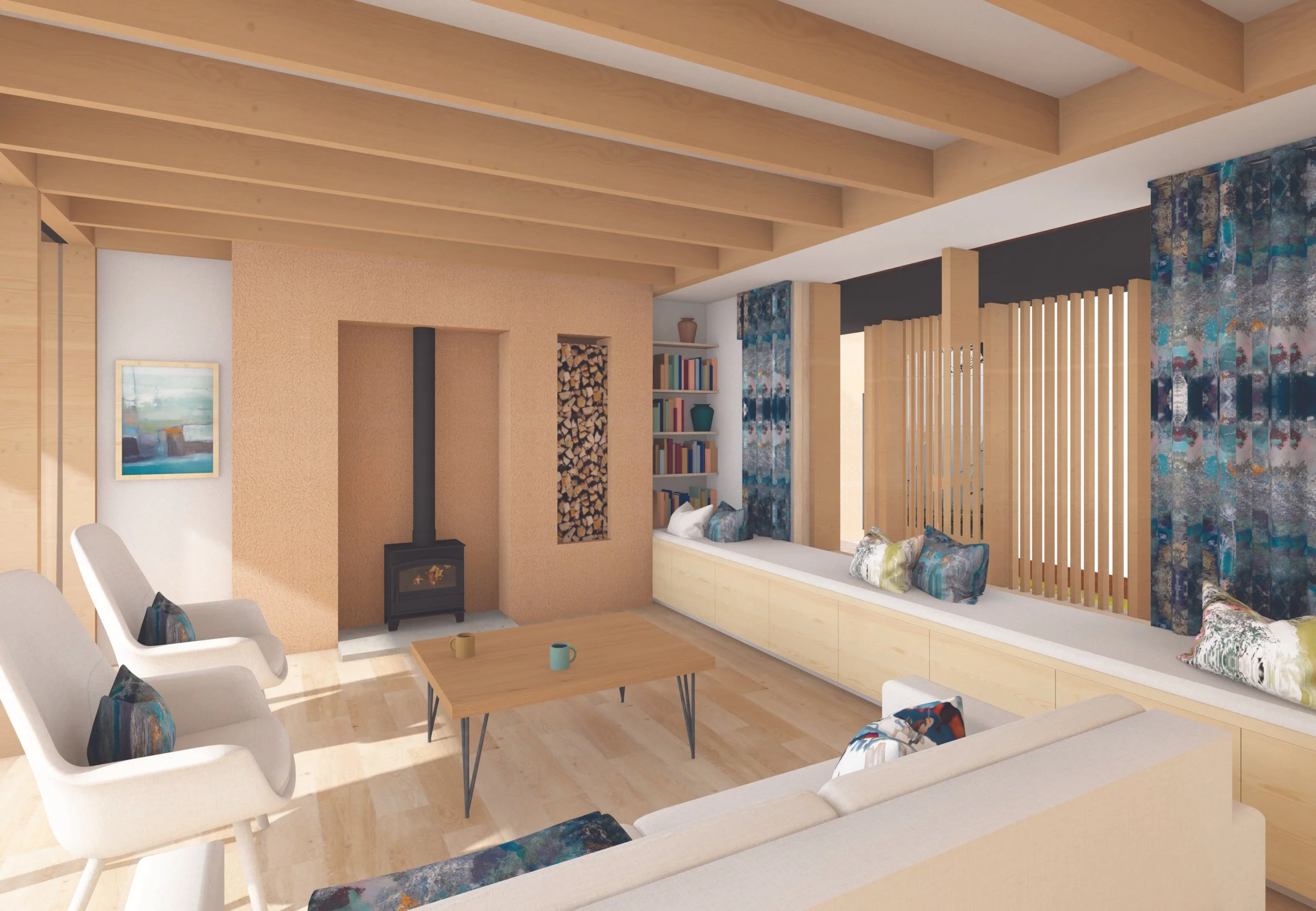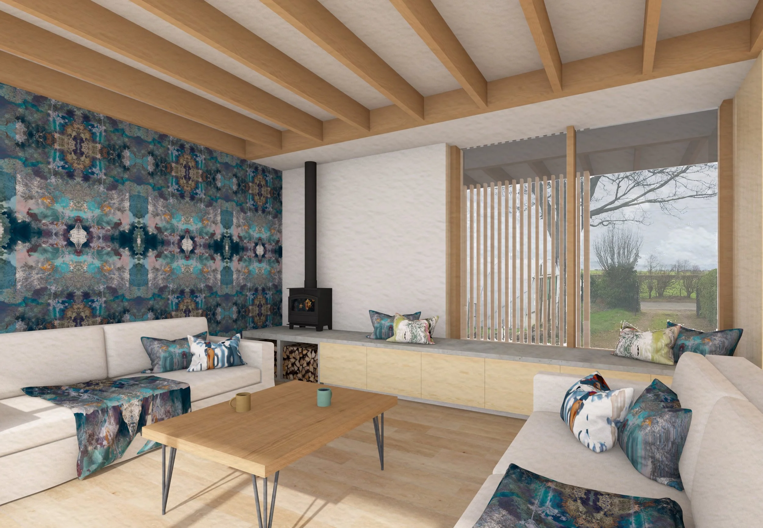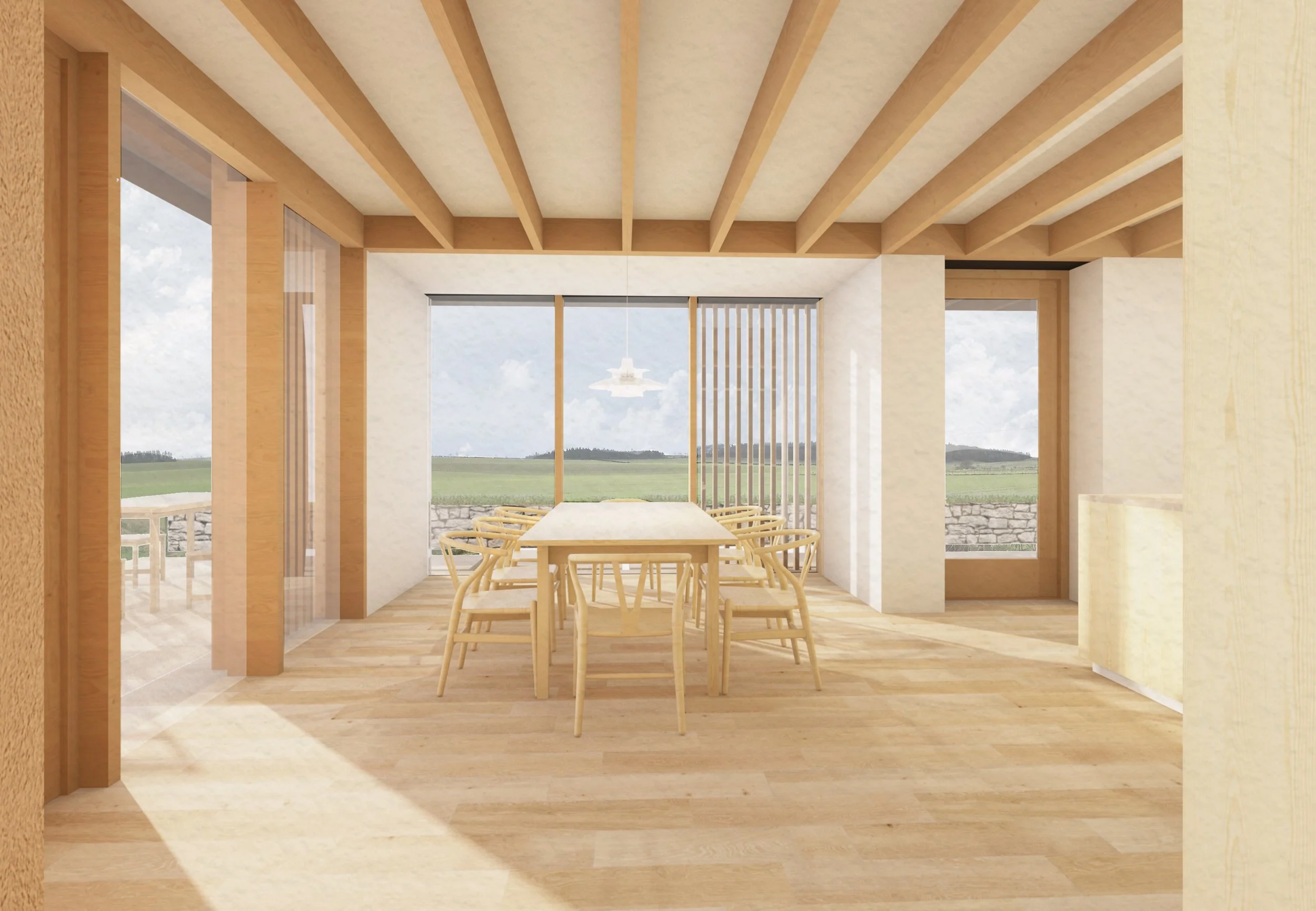 We have created designs for the alteration and extension of an existing house and outbuilding which sit within the gardens and paddocks of Newmains Holdings. Respecting post-WWII era designs for ex-servicemen, our brief was to bring the house up to modern standards, improving its sustainability and accessibility for the client and their young family. Designs focus on providing strong connections to the gardens through expansive social spaces; The existing outbuilding will be converted into a home office space on a new first floor level, a single storey extension will house a living area whilst a new wildflower roof which connects the buildings promotes biodiversity alongside the natural, breathable and low-embodied energy materials which will be incorporated.