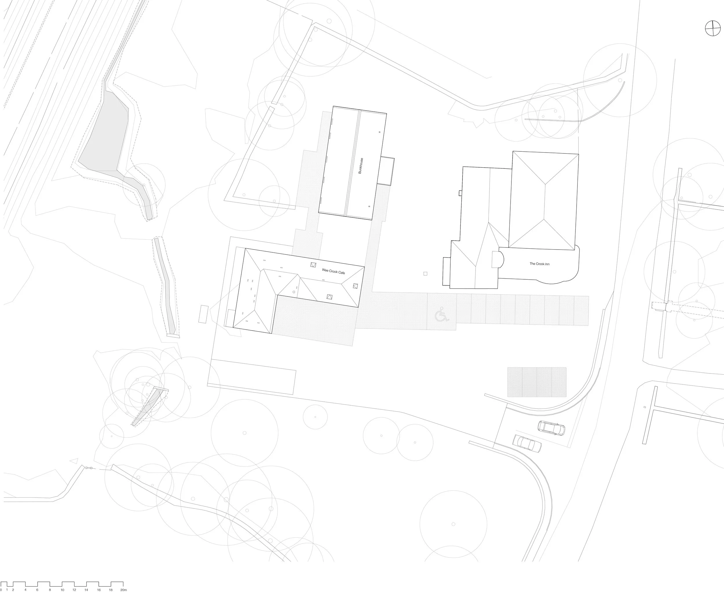 The Crook Inn was closed to the public in 2006 after over 400 years of operation as an Inn. A community buyout occurred at the end of 2012, with WTA subsequently starting work on designs for Crook Inn, the wider site and outbuildings as a range of hospitality venues. Whilst fundraising is ongoing for the redevelopment of the main Crook Inn building, the community has successfully secured surrounding land and buildings. Additional projects include the Wee Crook cafe which was completed in May 2022 and our current project for the TCC, The Crook Bunkhouse. The newly-built Bunkhouse replaces a dilapidated building and will provide overnight accommodation for up to 20 paying guests. This highly sustainable new building will complement the Wee Crook Cafe, which provides a welcoming community space for local residents and visitors alike.